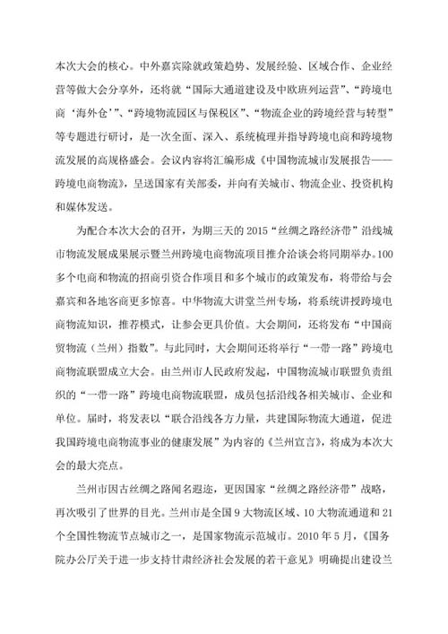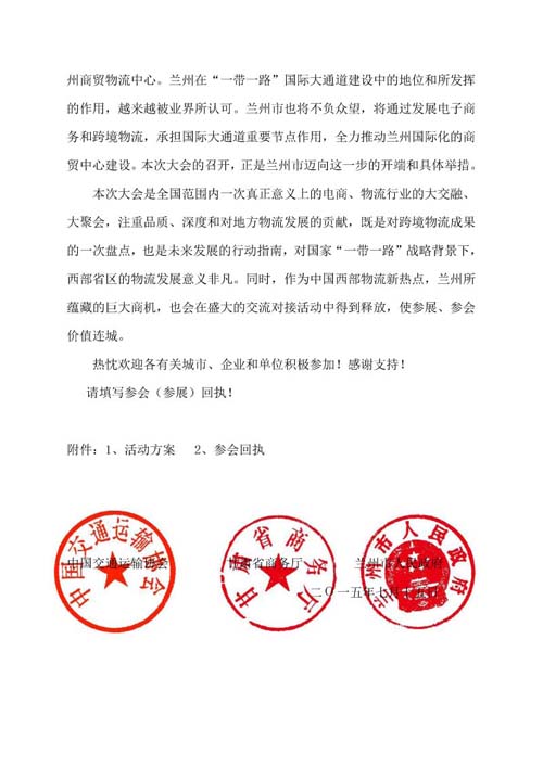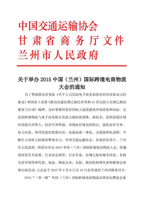 關于2015中國(蘭州) 國際跨境電商物流大會的通知