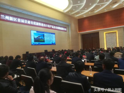 2017年11月17日,蘭州新區首屆甘肅名優新特進出口農產品及倉儲物流推介會在蘭州新區產業孵化大廈召開。推介會由甘肅省物流行業協會主辦,蘭州新區商貿物流投資集團有限公司承辦,來自甘肅省14個地州市80多家企業、100多位企業家和金融界人士參加了推介會。