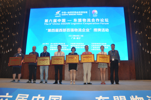 2018年9月13日, 由廣西壯族自治區人民政府、中國物流與采購聯合會主辦的第六屆中國—東盟物流合作論壇暨“第四屆西部物流百強企業”授牌活動在廣西南寧舉行。本屆論壇吸引了國內外物流行業領袖、專家學者參加,全國工商聯執委、甘肅省物流行業協會會長岳建武帶領甘肅省18家榮獲“第四屆西部物流百強企業”代表參加了此次盛會。