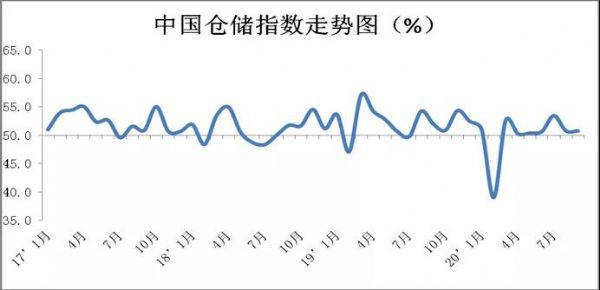 中國物流與采購聯合會發布的2020年9月份中國物流業景氣指數為56.1%,較上月回升3.9個百分點;中國倉儲指數為50.8%,與上月持平。