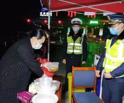 向寒夜里的抗疫一線人員送去一碗熱乎飯