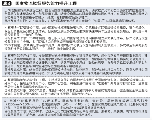 具體的細化目標有:建立以“干線運輸+區域分撥”為主要特征的現代化多式聯運網絡,全國鐵路貨運周轉量比重提升到30%左右,500公里以上長距離公路運量要大幅減少。要推動多式聯運、甩掛運輸等先進運輸組織方式廣泛應用,國家物流樞紐單元化、集裝化運輸比重超過40%。要完善互聯互通的樞紐信息網絡,國家物流樞紐一體化運作、網絡化經營、專業化服務能力進一步提高。