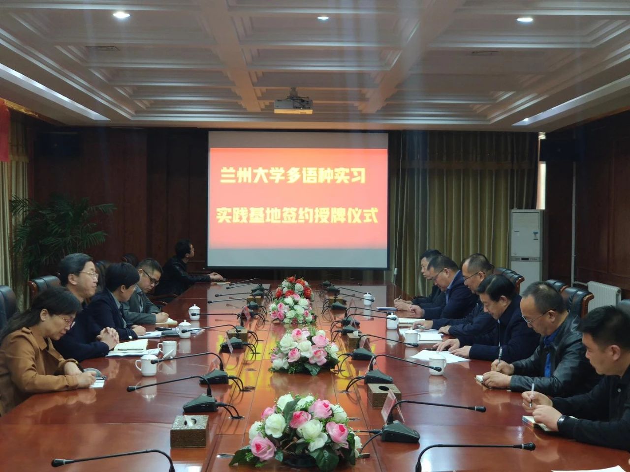 3月30日下午,蘭州大學外國語學院相關負責人在甘肅(武威)國際陸港與武威保稅物流中心舉行“蘭州大學多語種實習實踐基地”簽約授牌儀式。