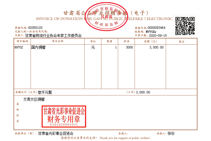 活動期間,身處各地的專家委員踴躍捐款、慷慨解囊,用實際行動助力受災群眾,用愛心善舉彰顯社會責任,大力弘揚了“一方有難、八方支援”的互助精神。專家委員蘇亮表示,文縣災情牽掛著每一個甘肅愛心人士的心,大家都以各種形式援助災區。作為專家委員,我們更不能落后,應該積極響應黨和政府號召,自覺行動起來,為災區重建貢獻一份力量!9月15日上午,本次活動募集的善款已捐贈甘肅省光彩事業促進會,將專門用于文縣災后重建工作。
